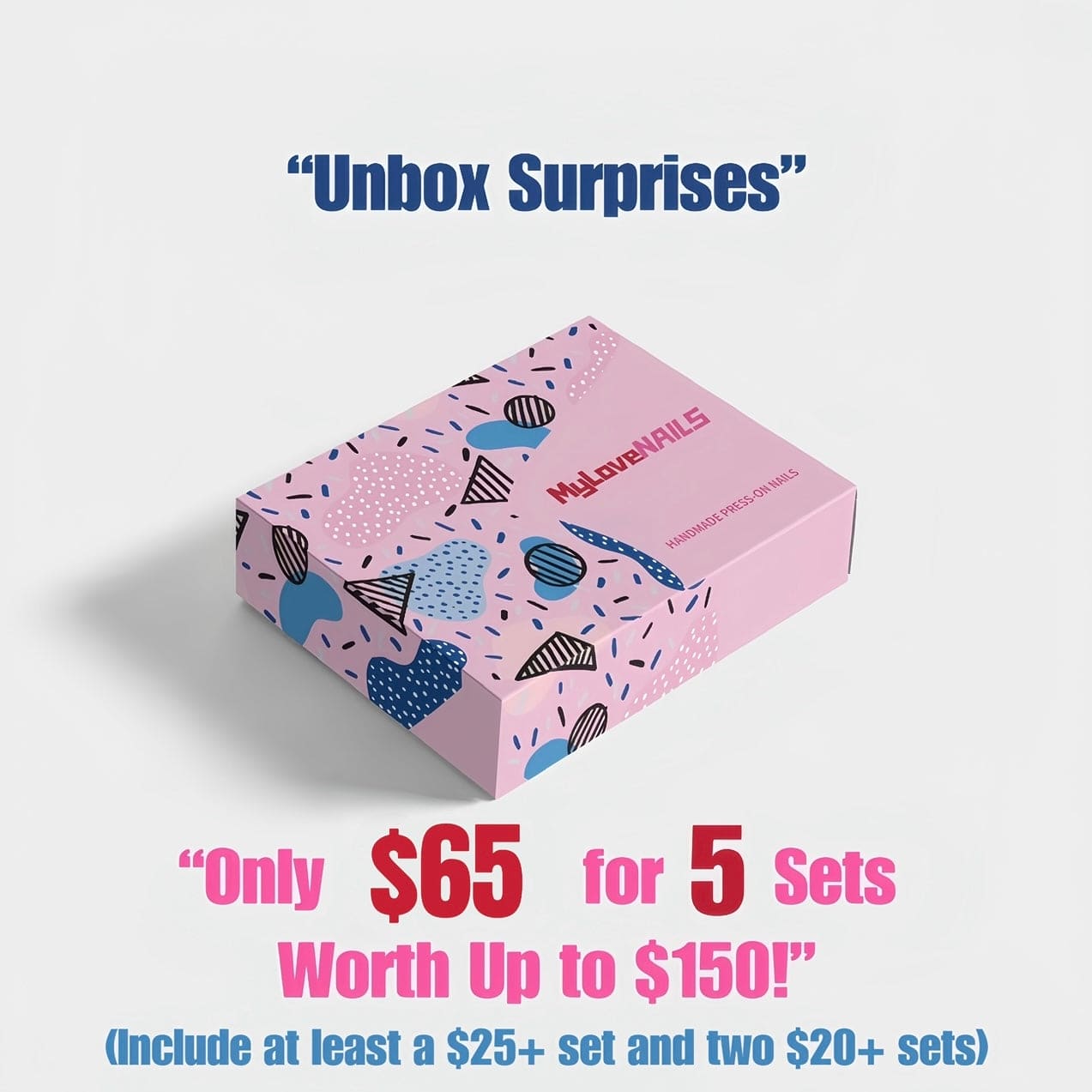 Get ready for the ultimate nail art surprise! For just $65, you can unbox five stunning nail art sets with a total value of up to $150! Each box includes at least one set worth $25 and two sets worth $20, making it an unbeatable deal!