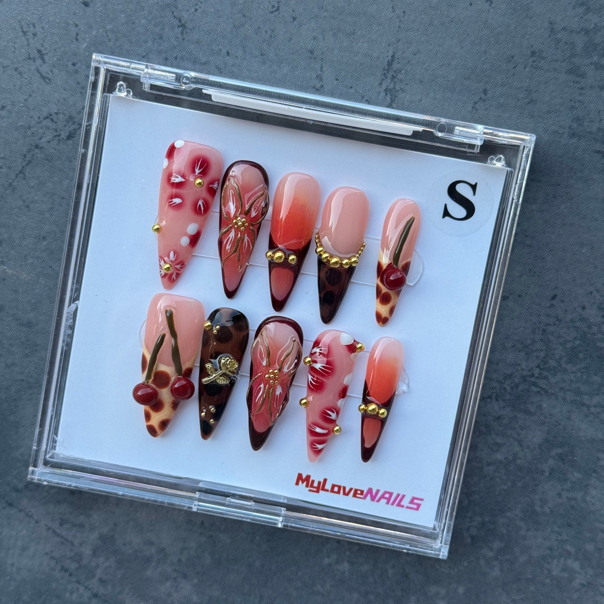 Elevate your nail game with these Dark Red Carved press-on nails featuring a chic blend of dark red and brown tones. The intricate carved design paired with subtle French tips and a bold leopard print creates a striking, sophisticated look. Easy to apply and durable, these nails offer salon-quality style instantly—perfect for making a confident statement every day.