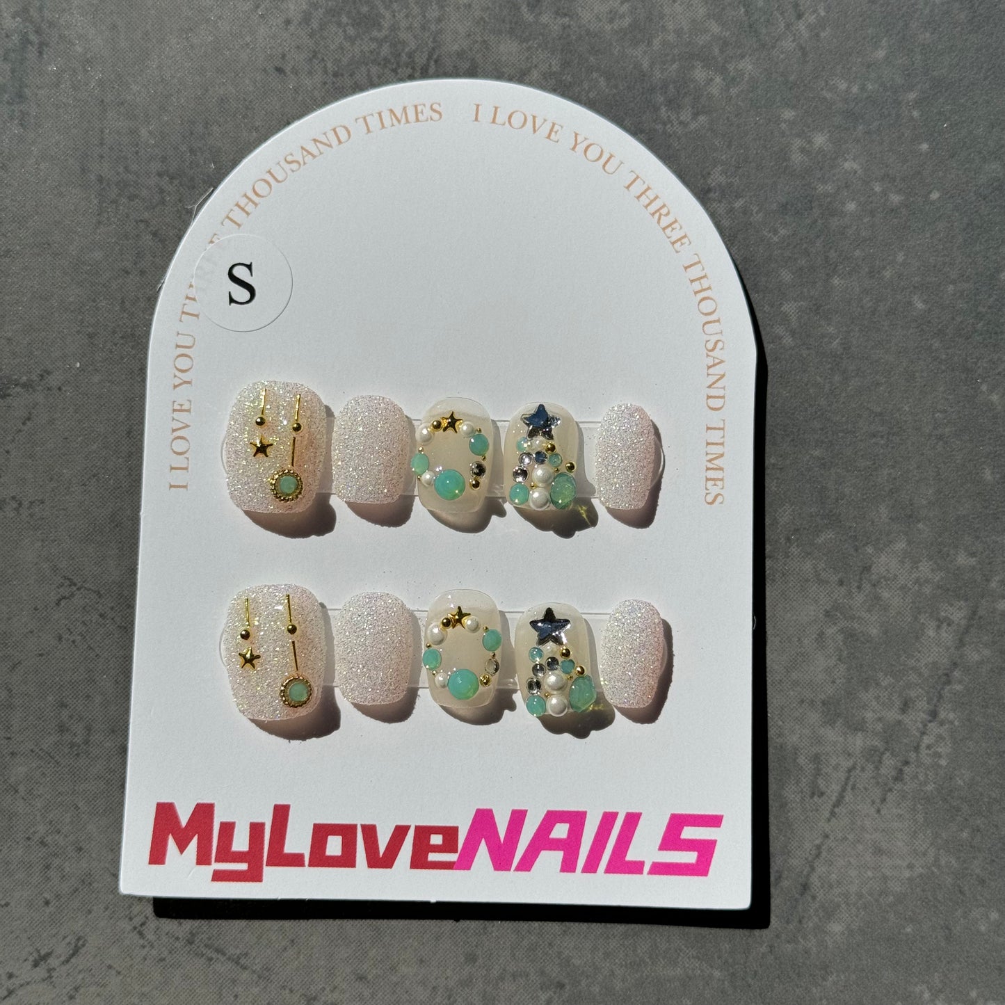 These nails are perfect for the holiday season, featuring a festive snow white and turquoise design. Get ready to sleigh the holiday party with these easy to apply and long-lasting press-on nails.