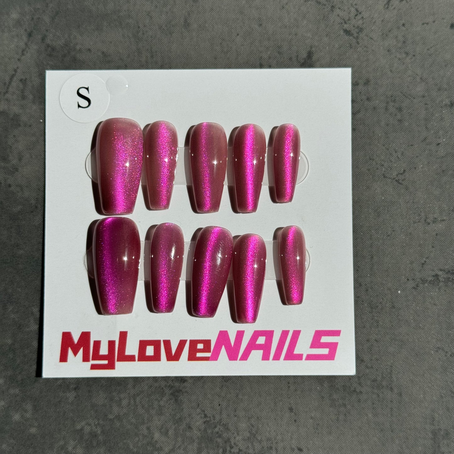 Hand made | Pink Fantasy (Pink, cat's eye, baby's breath) press-on nails and fake nails.
