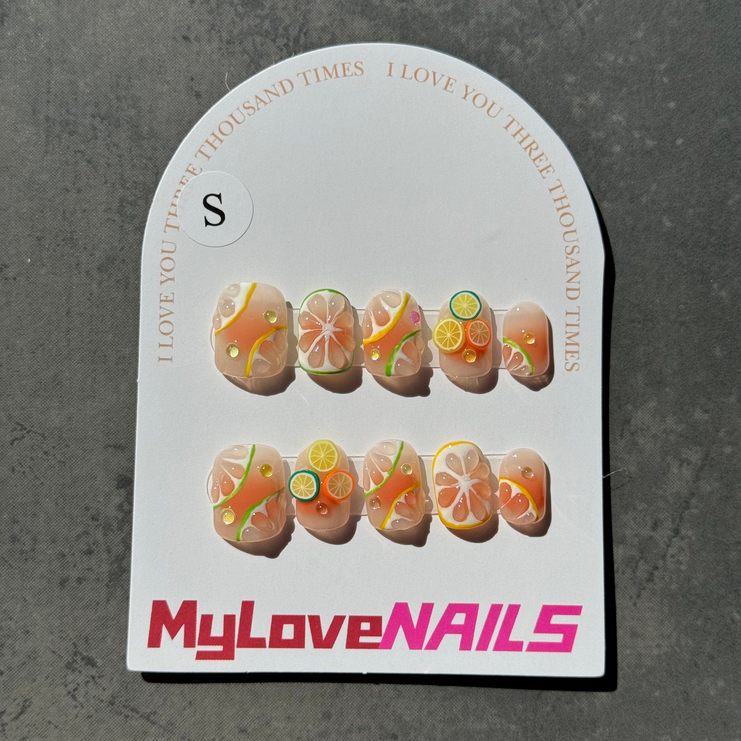 Hand made | Cute Citrus (lemon, cute, fruit, smudge) press-on nails and fake nails.