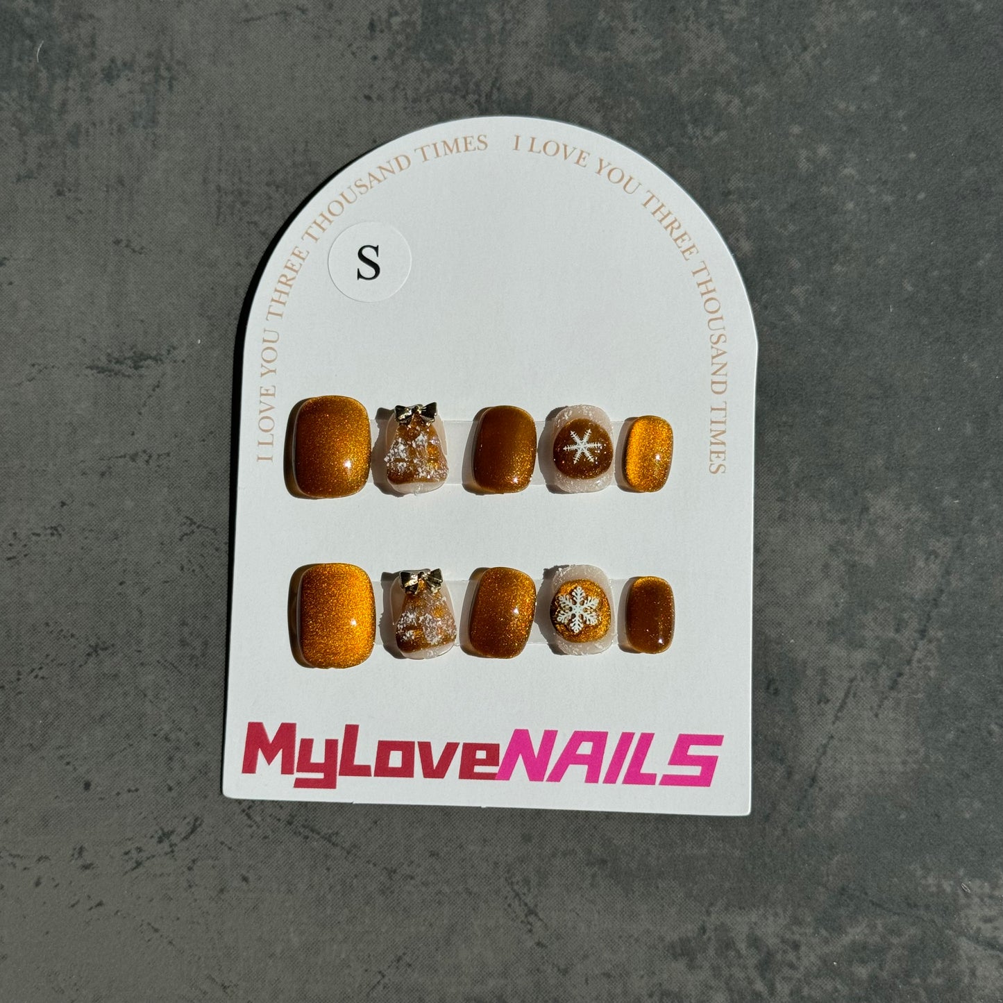 Hand made | Amber Cat's Eye (Dark yellow, dark yellow, snowflake, cat's eye) press-on nails and fake nails.