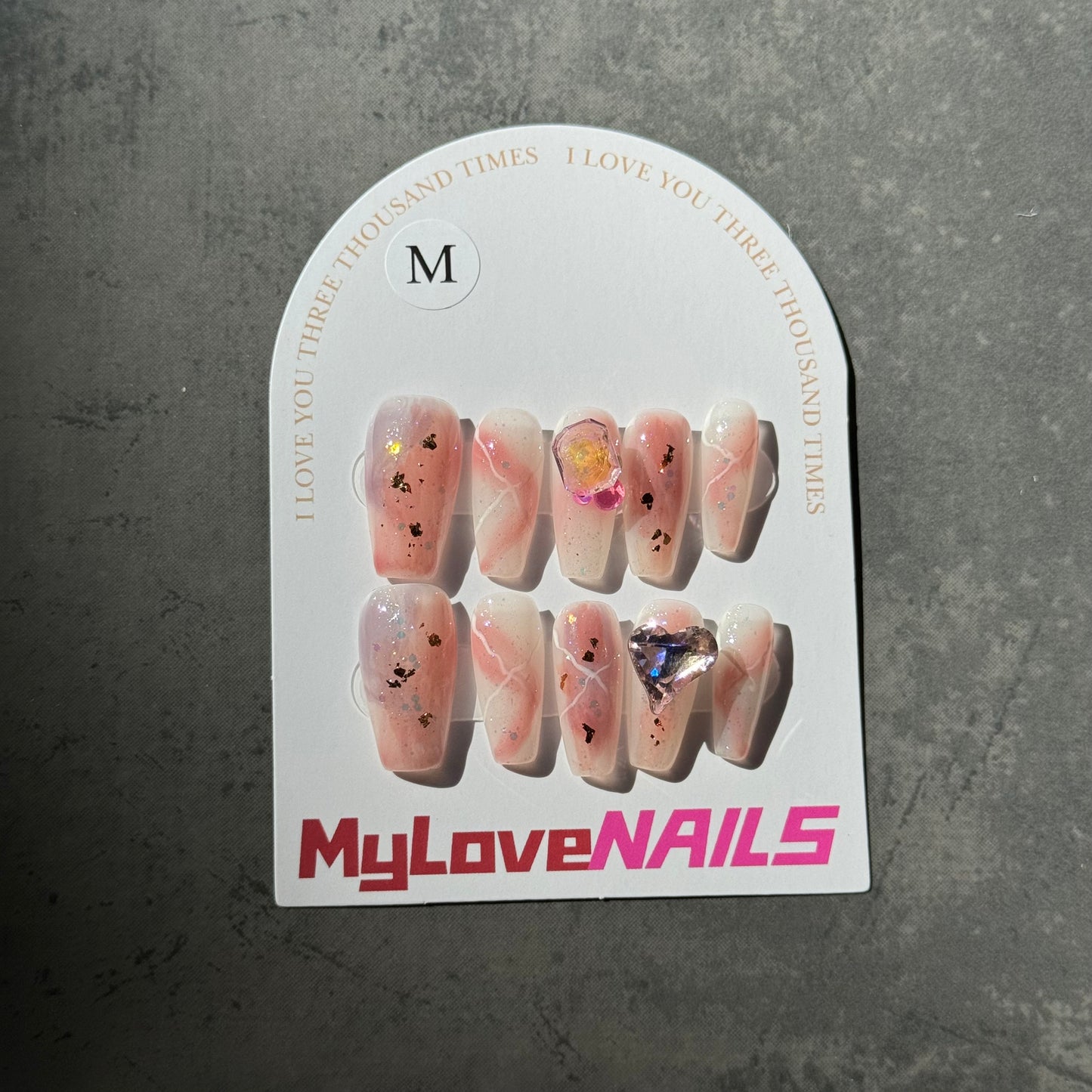 Hand made | Pink Blur (Light pink, diamond, blur) press-on nails and fake nails.