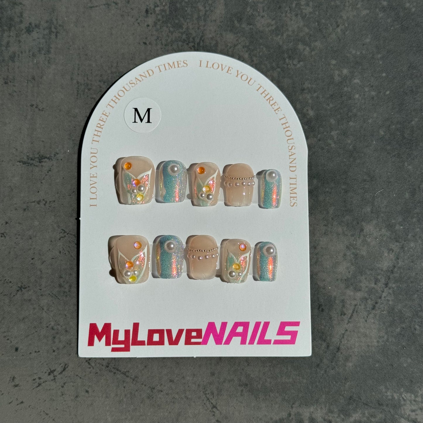 Hand made | Tail Charm (tail, colorful, pearl) press-on nails and fake nails.