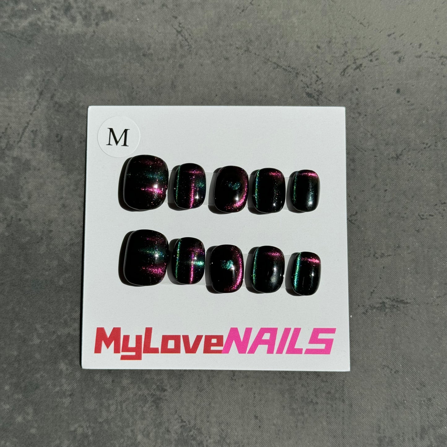 Unleash your inner feline charm with our Black Cat-Eye Press-On Nails. The perfect accessory to add an instant touch of glamour to any look. With easy application and long-lasting wear, you'll be catching everyone's attention in no time!