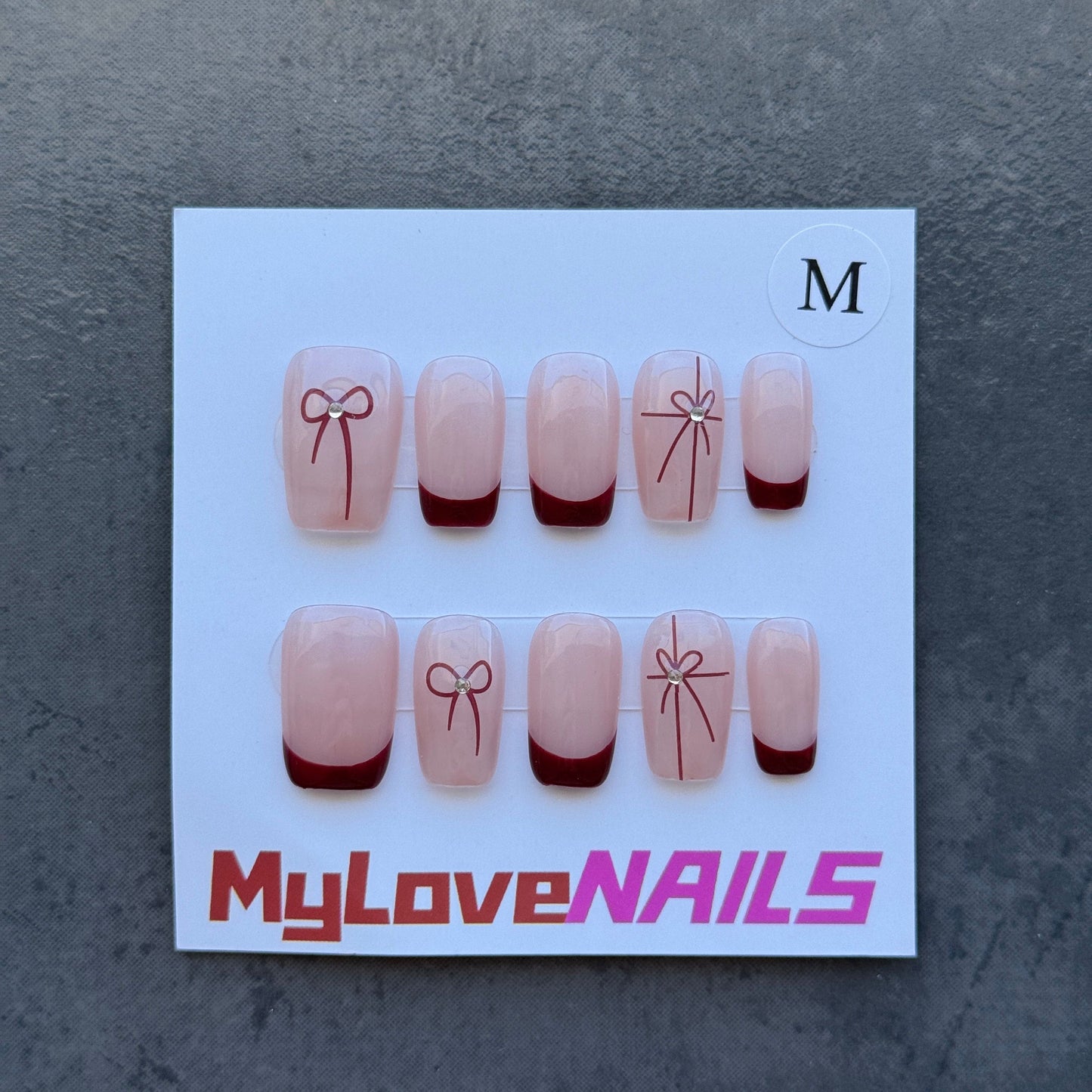 Hand made | French Rouge Bow (red, french, bow) press-on nails and fake nails.